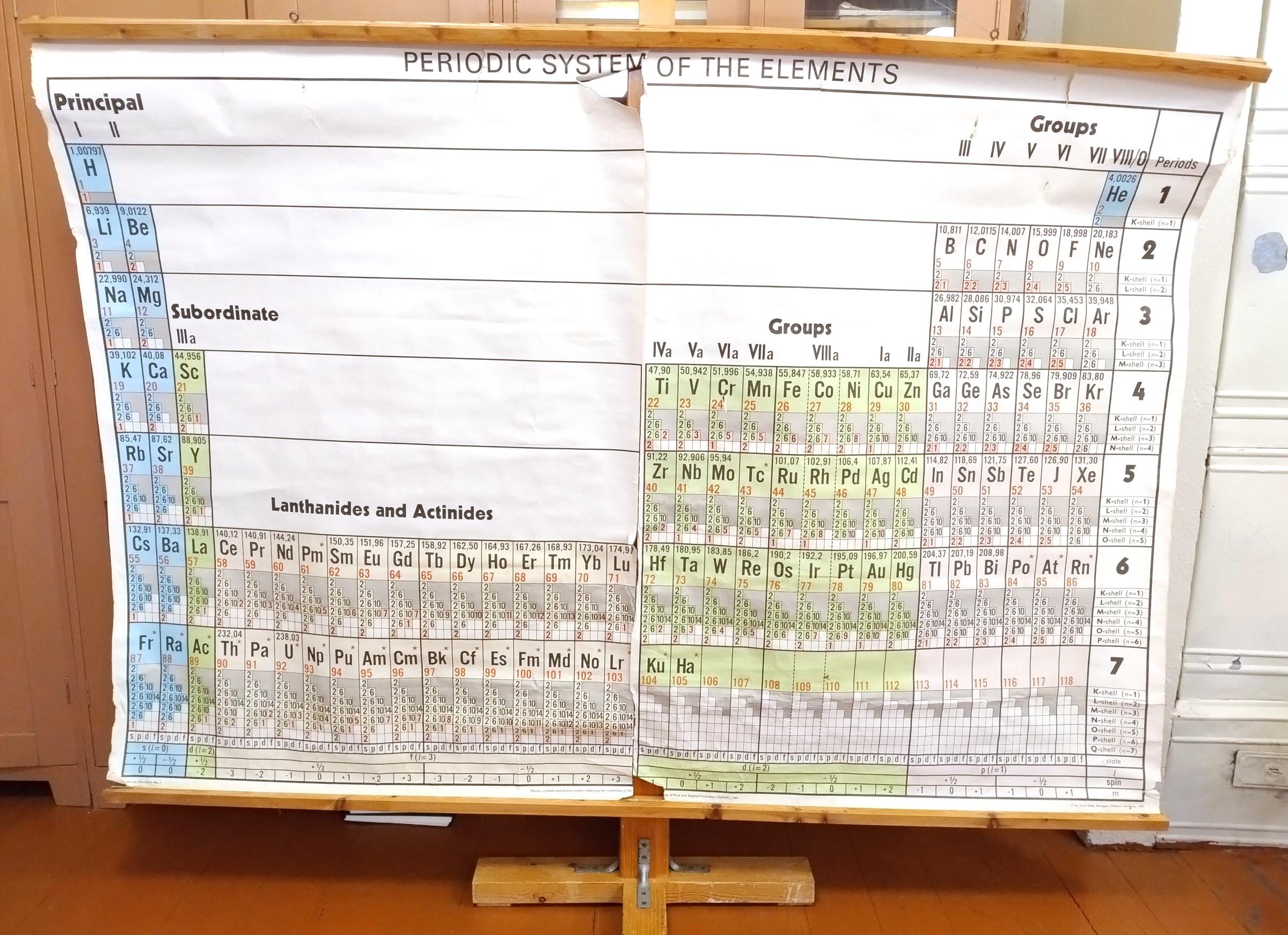 Haluaisiko joku seinälleen tällaisen ”Periodic system of the elements” ‑sisustustaulun Länsi-Saksasta vuodelta 1963? Heikossa hapessa mutta paskarrellen paikattavissa. (Pystysuunnassa keskeltä melkein kokonaan halki, mitä ei kuvasta huomaa.) Suunnilleen 195 cm leveä ja 135 cm korkea. Postittamaan en ala, mutta kulkeutuisi tulevana viikonloppuna Rovaniemelle ja Tornioon tai sitä seuraavana perjantaina Helsinkiin. Maksuksi käy esim. purkki Lidlin Bellarom Gold Decaf ‑pikakahvia (paahtoaste 5/5).